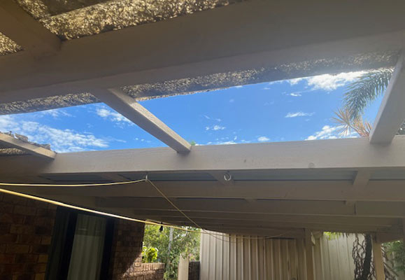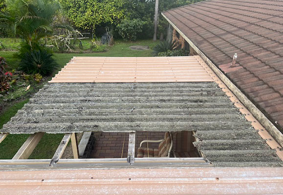 Patio before roof restoration
